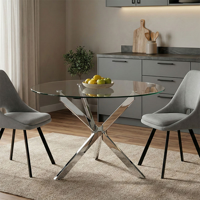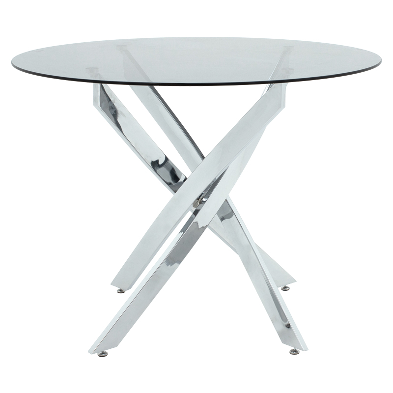 Τραπέζι Antoro pakoworld γυαλί και μεταλλικά πόδια σε απόχρωση χρωμίου Φ100×75εκ