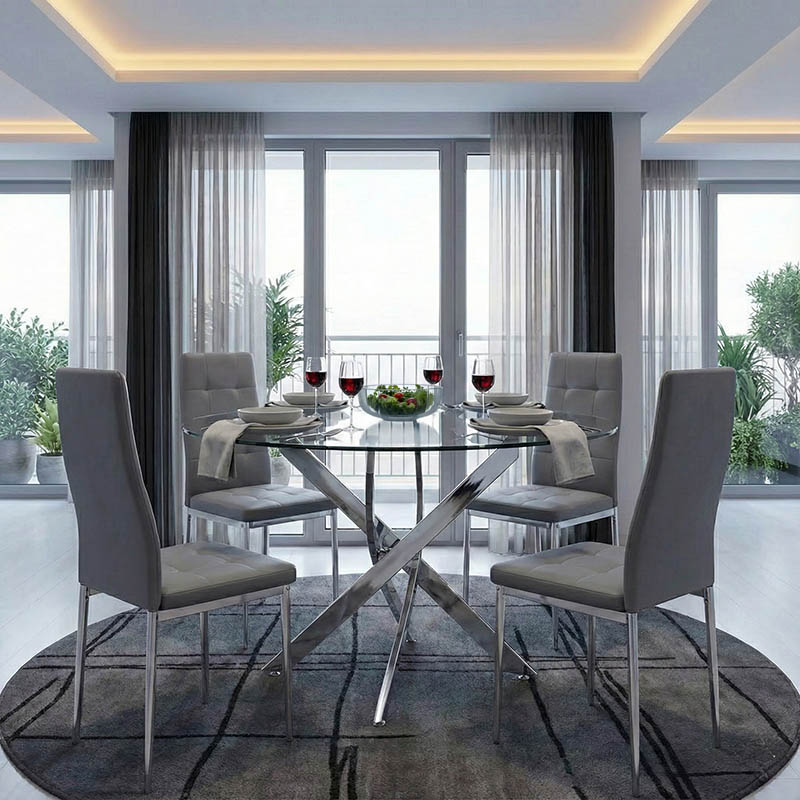Τραπέζι Antoro pakoworld γυαλί και μεταλλικά πόδια σε απόχρωση χρωμίου Φ80×75εκ
