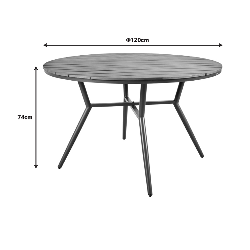 Τραπέζι Appa pakoworld αλουμίνιο και plywood σε ανθρακί απόχρωση Φ120×74εκ