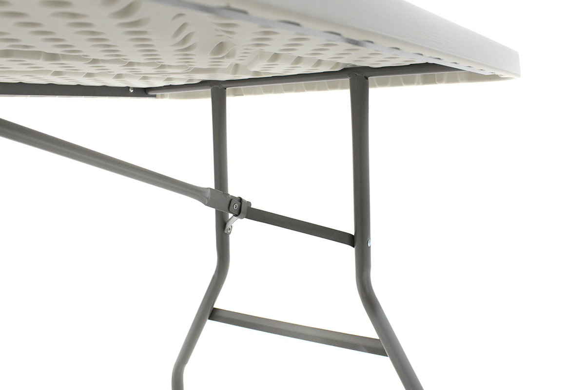 *Στήριξη σε ενισχυμένο μεταλλικό σκελετό Φ28 – 1mm ηλεκτροστατικής βαφής που καταλήγει σε ένα πτυσσόμενο σύστημα ποδιών, σε γκρι χρώμα. Έχει μεγάλη αντοχή σε χτυπήματα και εξαιρετική σταθερότητα. Όταν δεν χρησιμοποιείται τα πόδια «μαζεύουν» κάτω από την επιφάνεια, εξοικονομώντας χώρο για την εύκολη αποθήκευση και μεταφορά του.