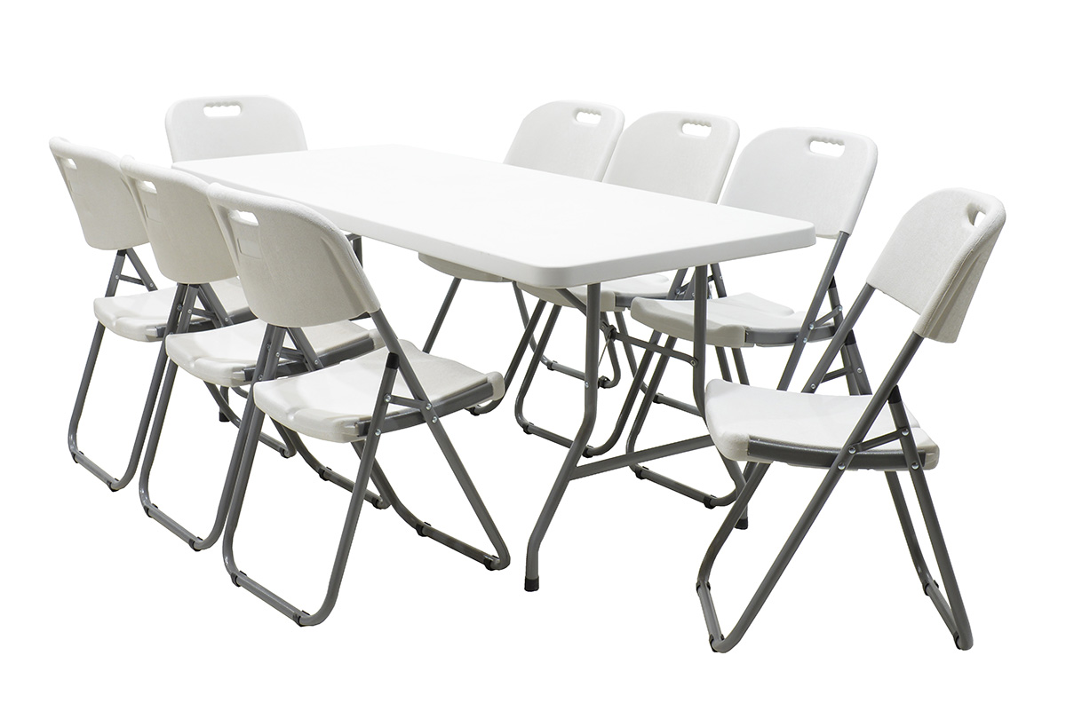 Τραπέζι πτυσσόμενο Aprilia (catering – συνεδρίου) ορθογώνιο με μεταλλική βάση χρώμα λευκού-γρανίτι / γκρι 183x76x74εκ