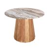 Τραπέζι Ezerdian pakoworld μασίφ ξύλο ακακίας σε φυσική απόχρωση με επιφάνεια ματ μαρμάρου Φ120×76εκ