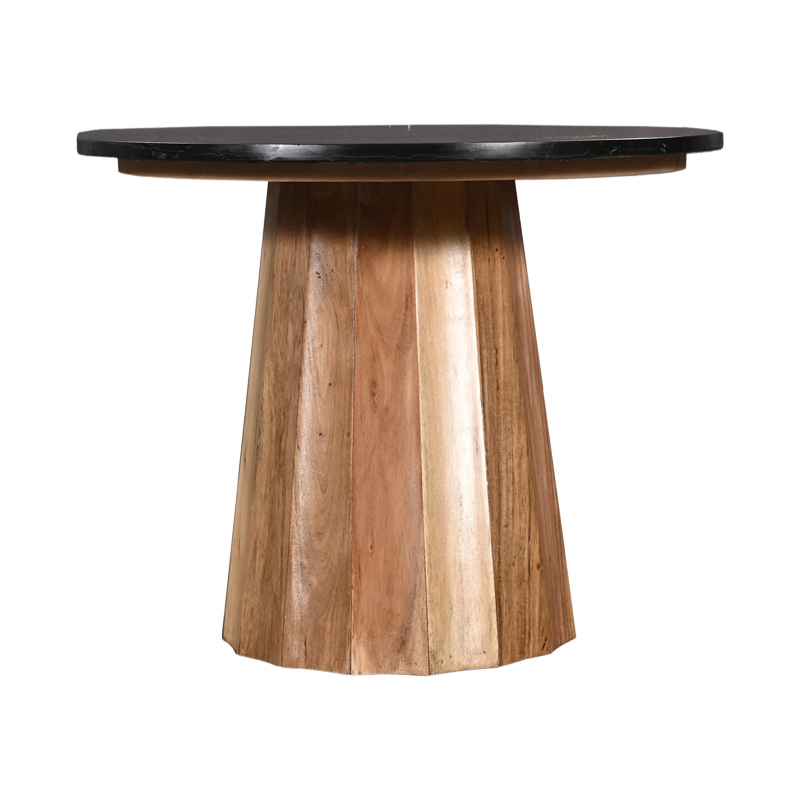 Τραπέζι Ezerdian pakoworld μασίφ ξύλο ακακίας σε φυσική απόχρωση με επιφάνεια μαύρου ματ μαρμάρου Φ120×76εκ