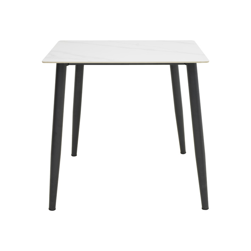 Τραπέζι Gustas pakoworld λευκό μαρμάρου sintered stone-μαύρο μέταλλο 80x80x76εκ