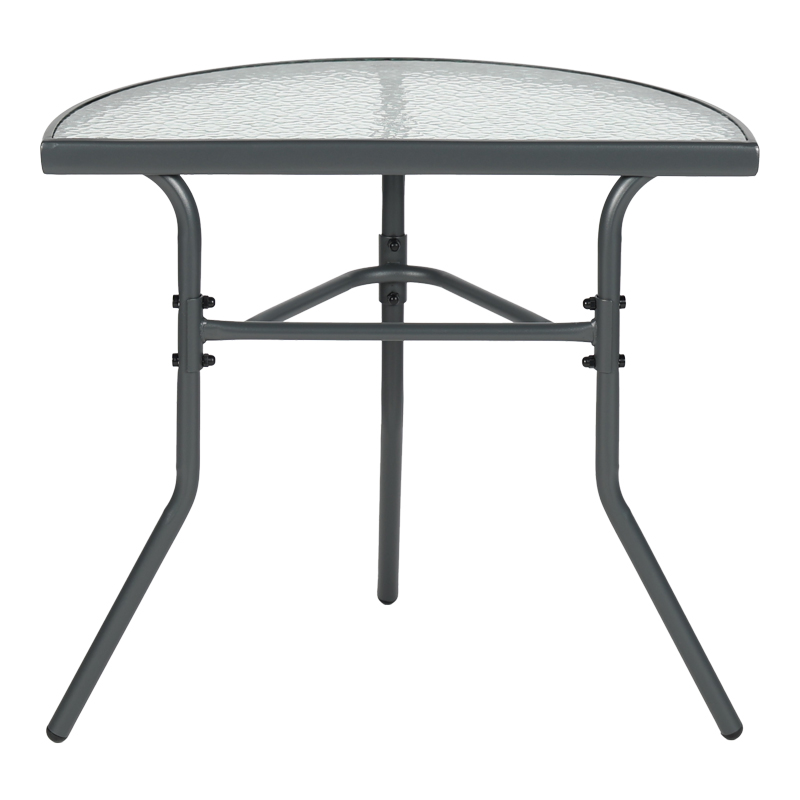 Τραπέζι ημικυκλικό Bion pakoworld γυαλί-μέταλλο σε ανθρακί απόχρωση 70x40x65εκ
