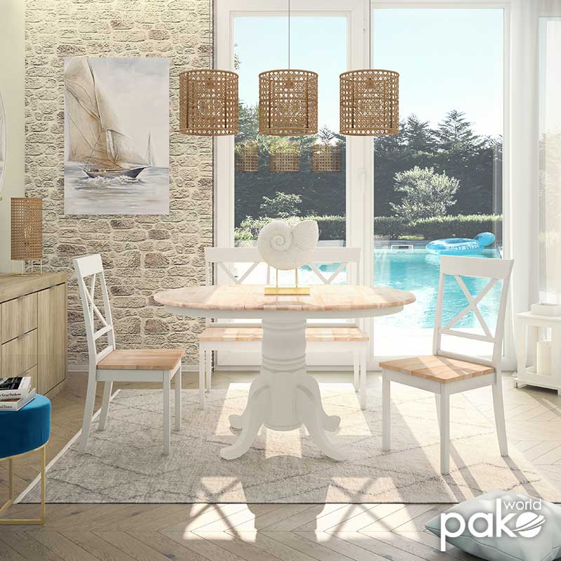 - Επιφάνεια τραπεζιού σε φυσικό χρώμα – πόδια σε λευκό