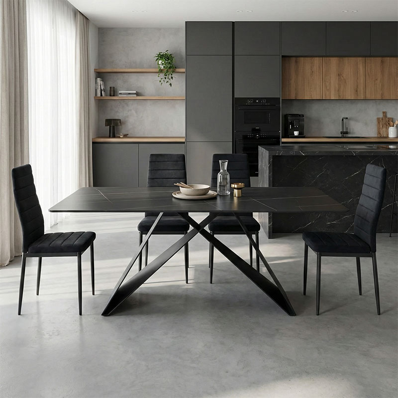 Τραπέζι Mapele pakoworld μαύρη όψη μαρμάρου με μαύρα μεταλλικά πόδια 180x90x75εκ