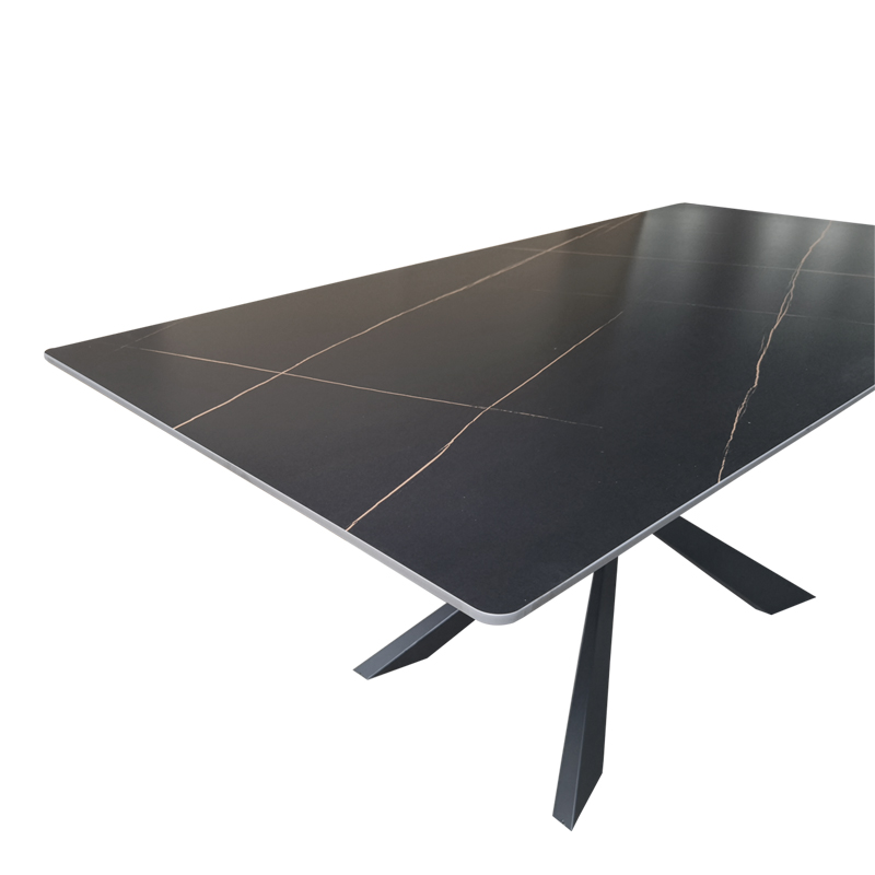 Τραπέζι Mattias pakoworld sintered stone μαύρη όψη μαρμάρου με μαύρα μεταλλικά πόδια 180x90x75εκ