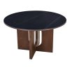 Τραπέζι Merge pakoworld sintered stone-mdf σε μαύρο μαρμάρου με καρυδί βάση Φ130×75εκ