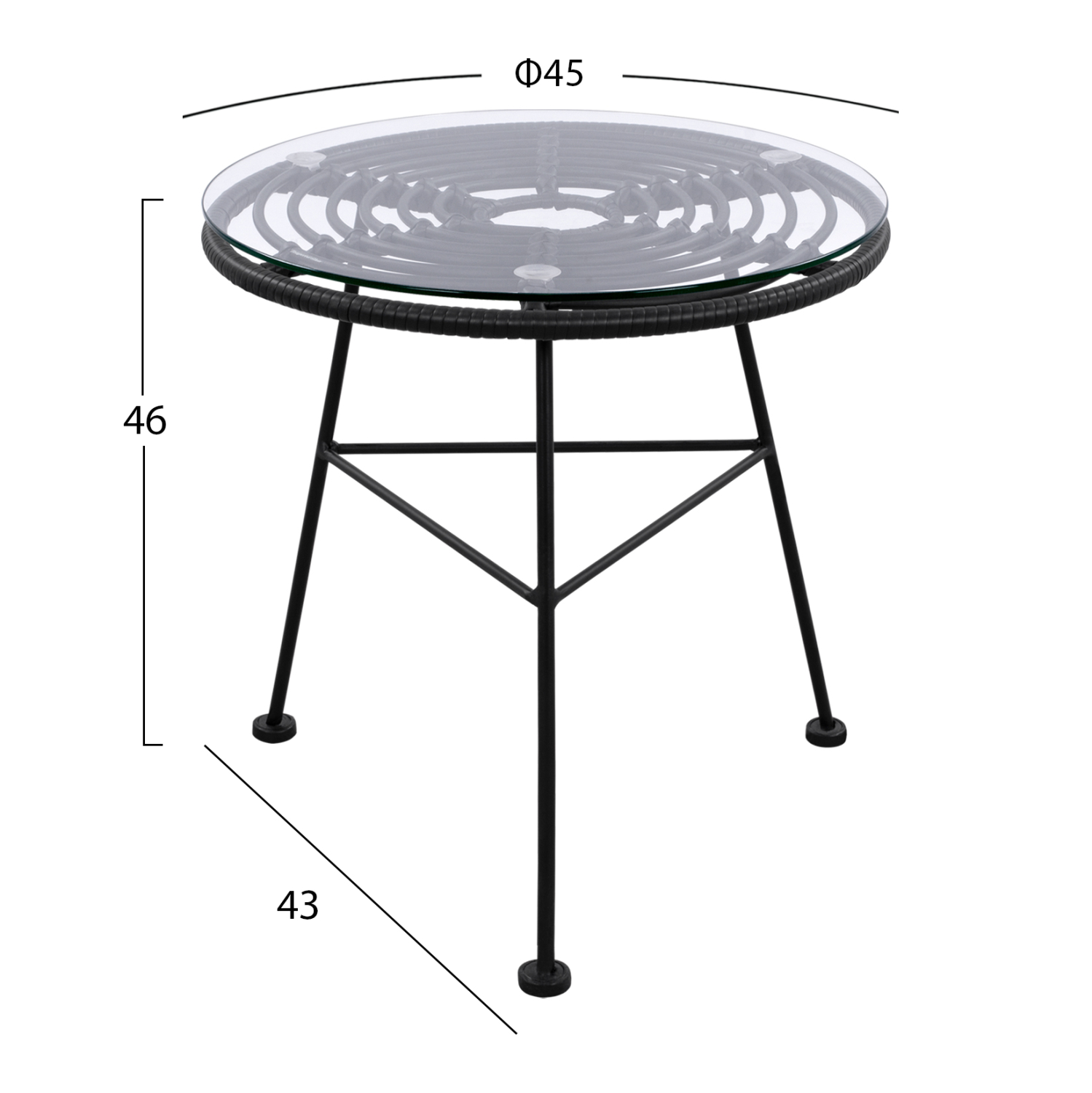 ΤΡΑΠΕΖΙ ΜΕΤΑΛΛΙΚΟ ALLEGRA ΜΕ WICKER ΣΕ ΜΑΥΡΗ ΑΠΟΧΡΩΣΗ ΚΑΙ ΓΥΑΛΙ HM5459.02 Φ45×46εκ