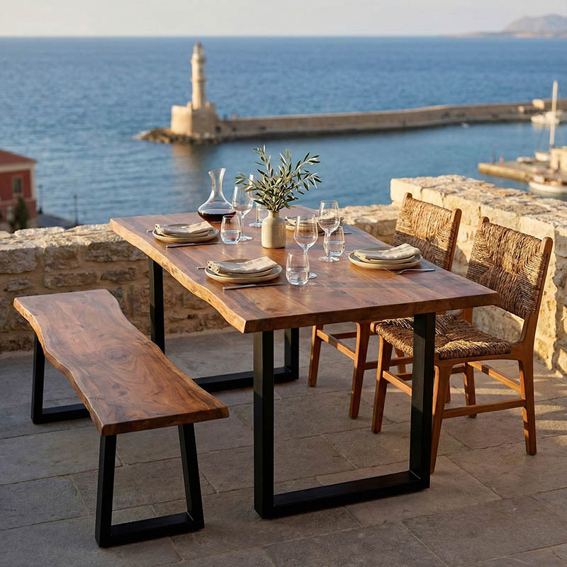 • Acacia/ Ακακία: Το ξύλο ακακίας είναι σκληρό και ανθεκτικό στη φθορά, κάνοντάς το κατάλληλο για επίπλωση και χρήση σε εξωτερικούς χώρους. Είναι γνωστό για την ανθεκτικότητά του, την ομορφιά που προσφέρει το φυσικό του χρώμα και την αντοχή του. Χρησιμοποιείται ευρέως στην κατασκευή επίπλων, δαπέδων, επιφανειών εργασίας και εξωτερικών δομών όπως κήποι και μπαλκόνια.