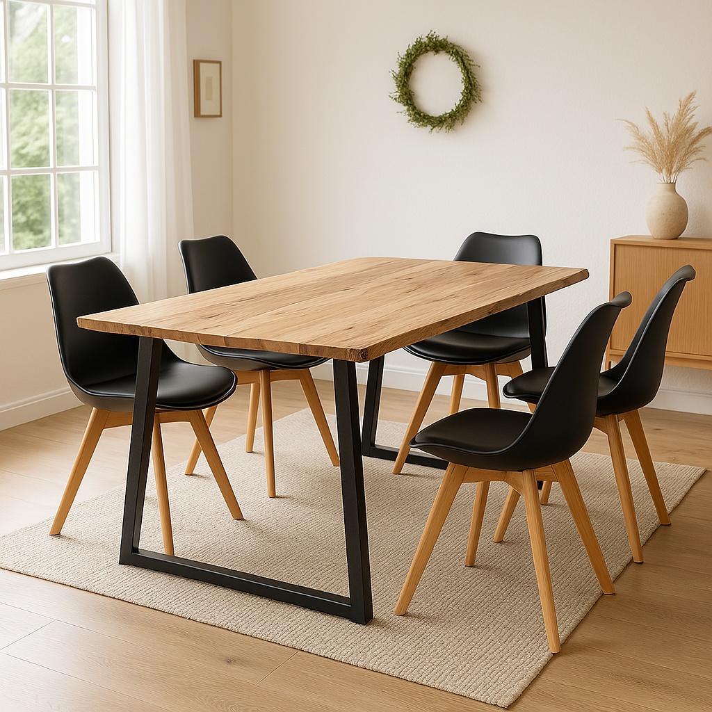 Τραπέζι Miles Slim pakoworld μασίφ ξύλο ακακίας σε φυσική απόχρωση με μαύρα μεταλλικά πόδια 160x90x76εκ