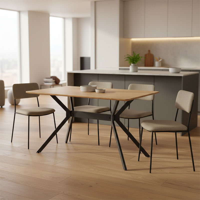 Τραπέζι Nerelis pakoworld φυσικό mdf και πόδι μαύρο μέταλλο 120x70x75εκ