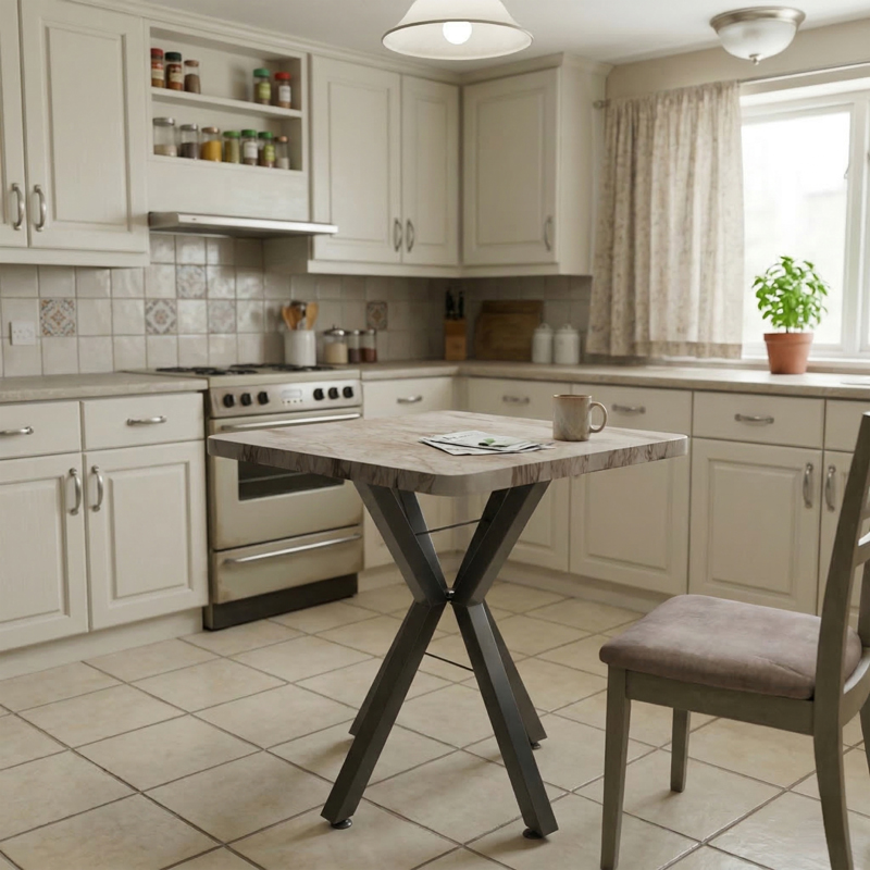 Τραπέζι Prestone pakoworld λευκό μαρμάρου μελαμίνης-μαύρο μέταλλο 70x70x75εκ