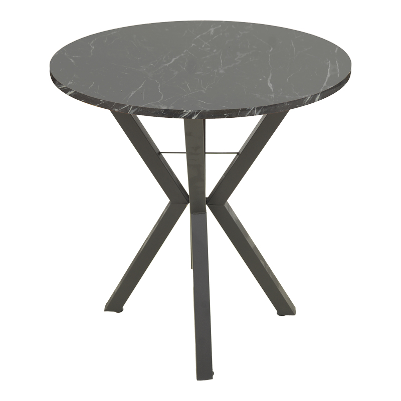 Τραπέζι Rogue pakoworld μαύρο εφε μαρμάρου με μαύρα μεταλλικά πόδια Φ70×72εκ