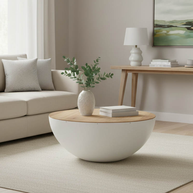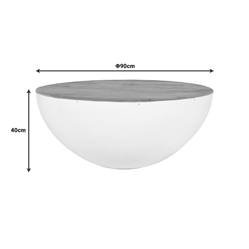Τραπέζι σαλονιού Coffelty Inart μασίφ ξύλο ακακίας – λευκό μέταλλο Φ90×40εκ