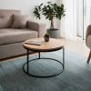 Τραπέζι σαλονιού Drion pakoworld oak μελαμίνης-μαύρο μέταλλο Φ60×42εκ
