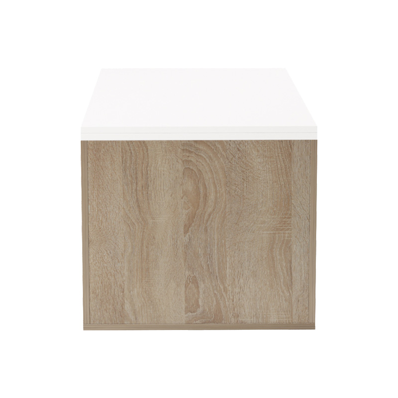 Tο μοντέρνο και λειτουργικό τραπεζάκι σαλονιού Extera αποτελεί μια κομψή προσθήκη σε κάθε σύγχρονο σπίτι. Ο συνδυασμός του λευκού χρώματος με τις ξύλινες λεπτομέρειες δημιουργεί μια αίσθηση ζεστασιάς και φωτεινότητας στον χώρο, ενώ ο έξυπνος σχεδιασμός του προσφέρει πρακτική αποθήκευση.
