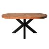 - Μοναδικός Σχεδιασμός: Η οβάλ επιφάνεια από μασίφ ξύλο, με το εντυπωσιακό ακτινωτό μοτίβο, προσδίδει μια αίσθηση ζεστασιάς και εκλεπτυσμένης ρουστίκ κομψότητας. Κάθε τραπέζι είναι μοναδικό, με τους φυσικούς κόκκους του ξύλου να αφηγούνται τη δική τους ιστορία.