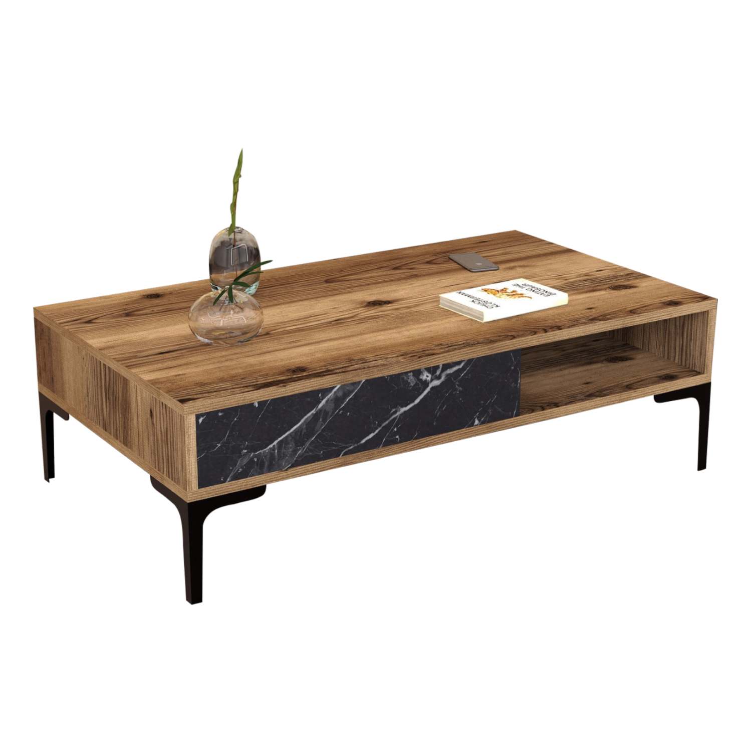 ΤΡΑΠΕΖΙ ΣΑΛΟΝΙΟΥ HM9503.04 ΜΕΛΑΜΙΝΗΣ ΚΑΡΥΔΙ-ΜΑΥΡΟ ΜΑΡΜΑΡΟ&ΜΕΤΑΛ.ΠΟΔΙ 105x60x32.6Υεκ.