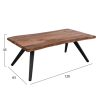 Ανακαλύψτε το μοναδικό χειροποίητο τραπέζι σαλονιού HM8365.11 με επιφάνεια από φυσικό μασίφ ξύλο ΑΚΑΚΙΑΣ. To σχήμα είναι ορθογώνιο και στηρίζεται σε 4 μαύρα μεταλλικά πόδια με τετράγωνο κόψιμο και σε σχήμα Λ στις 2 πλευρές του τραπεζιού. Το τραπέζι είναι πανέμορφο και λιτό σε φιλοσοφία, παράλληλα όμως φέρνει την φύση στο σαλόνι σας. Είναι γνωστό άλλωστε ότι η φύση, γενικά, λειτουργεί καταπραϋντικά στην ανθρώπινη ψυχολογία κι ένα τέτοιο τραπέζι θα αποτελέσει ένα «ζεστό» σημείο συγκέντρωσης στο σαλόνι σας.