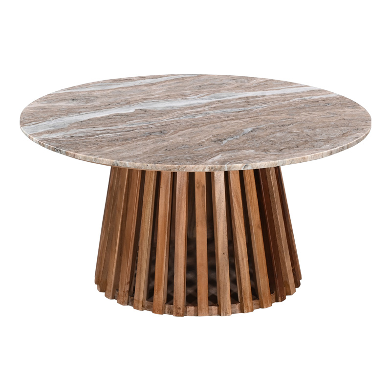 Τραπέζι σαλονιού Mable pakoworld μασίφ ξύλο ακακίας σε φυσική απόχρωση και επιφάνεια μαρμάρου Φ100×45εκ