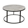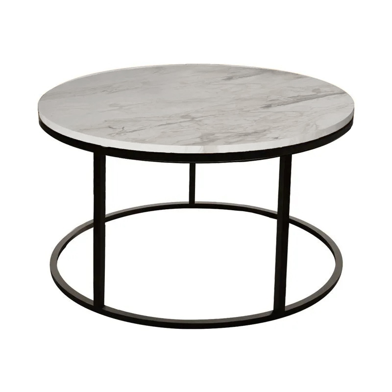 Τραπέζι σαλονιού Sikele pakoworld λευκή όψη μαρμάρου και μαύρα μεταλλικά πόδια Φ60×40εκ