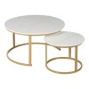 Τραπέζια σαλονιού Solme I pakoworld 2τεμ σε λευκή μαρμάρου απόχρωση με χρυσά μεταλλικά πόδια