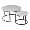 Τραπέζια σαλονιού Solme I pakoworld 2τεμ σε λευκή μαρμάρου απόχρωση με μαύρα μεταλλικά πόδια