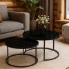 Τραπέζια σαλονιού Solme pakoworld 2τεμ μαύρο εφε μαρμάρου με μαύρα μεταλλικά πόδια