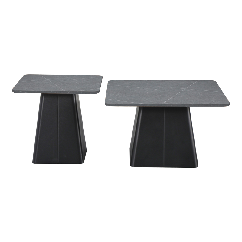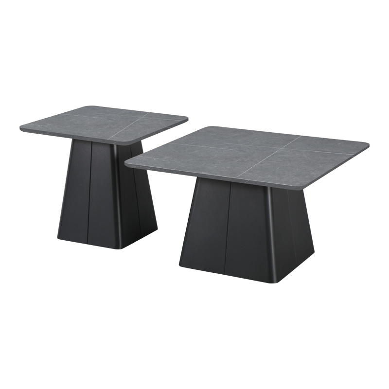 Τραπέζια σαλονιού Square pakoworld σετ 2 τεμ βάση μέταλλο σε μαύρη-sintered stone σε γκρι μαρμάρου