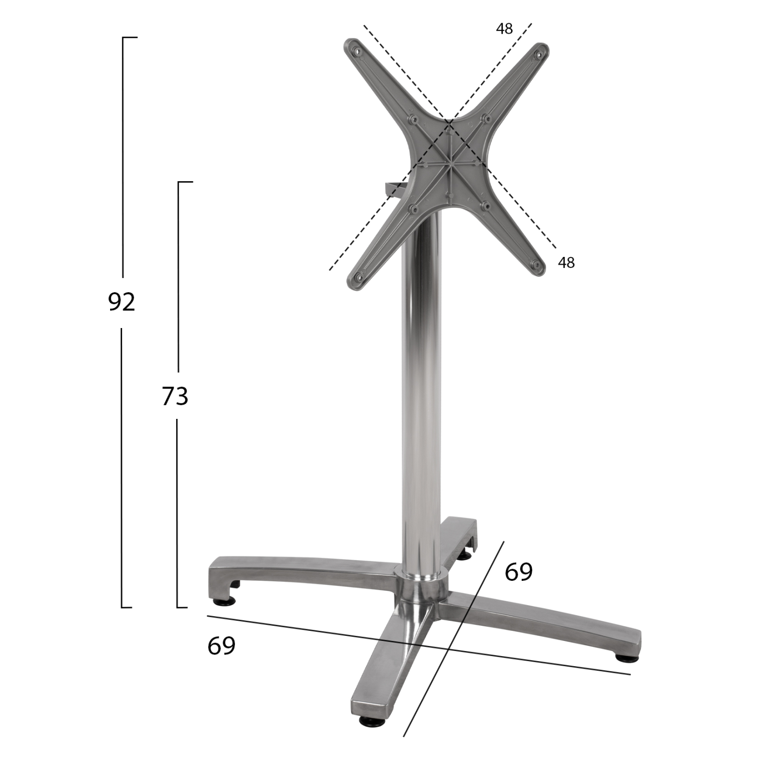 ΒΑΣΗ ΑΛΟΥΜΙΝΙΟΥ ΠΤΥΣΣΟΜΕΝΗ ΧΡΩΜΙΟΥ 69Χ69Χ73Υεκ. ΜΕ ΣΤΑΥΡΟ 48Χ48εκ.HM459.03