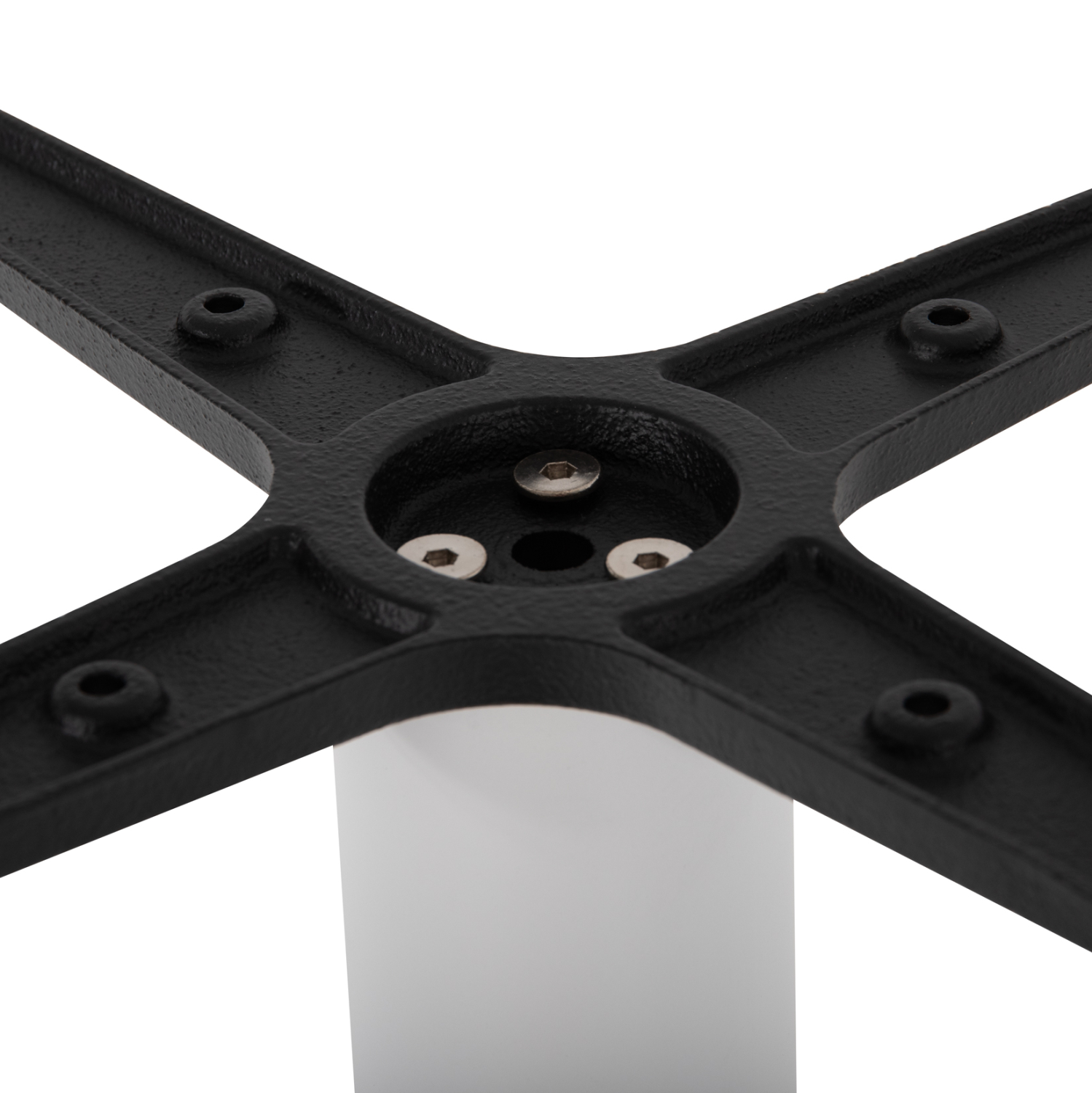 Η ΗΜ439.02 είναι βάση για τραπέζι bar σε ΛΕΥΚΟ ΜΑΤ χρώμα. Αυτή η βάση είναι μεταλλική με μία κολώνα η οποία στηρίζεται σε μια βαριά επίπεδη μεταλλική επιφάνεια. Το χαρακτηριστικό που κάνει αυτή την βάση ιδιαίτερα πρακτική είναι ότι το καπάκι που θα διαλέξετε στηρίζεται σε μια μεταλλική διάταξη «σταυρό», με αποτέλεσμα να μπορεί να δεχθεί τόσο στρογγυλά καπάκια, όσο και τετράγωνα. Επίσης, στο κάτω μέρος της διαθέτει ρυθμιστές ύψους (ρεγουλατόρους). Ιδανική πρόταση για συνδυασμό με επιφάνειες σχεδόν κάθε είδους, όπως βερσαλίτες, HPL, MDF, κτλ.