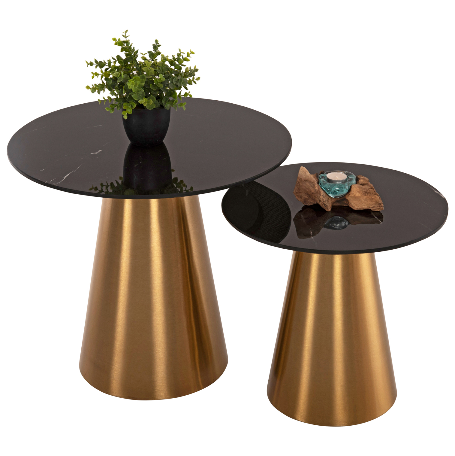 ΒΟΗΘΗΤΙΚΑ ΤΡΑΠΕΖΑΚΙΑ 2ΤΜΧ RENGI HM9665 ΜΕΤΑΛΛΟ ΧΡΥΣΟ-ΜΑΥΡΟ ΚΕΡΑΜΙΚΟ TOP Φ56&Φ43 εκ.
