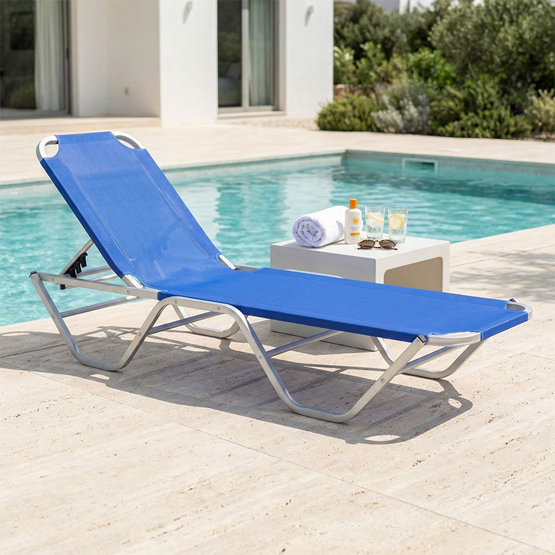 Ξαπλώστρα Dessie pakoworld αλουμινίου στοιβαζόμενη textilene μπλε 56x188x30εk
