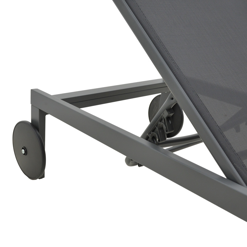 Ξαπλώστρα Mailo pakoworld ανθρακί αλουμίνιο και textilene σε μαύρη απόχρωση 71x206x30εκ