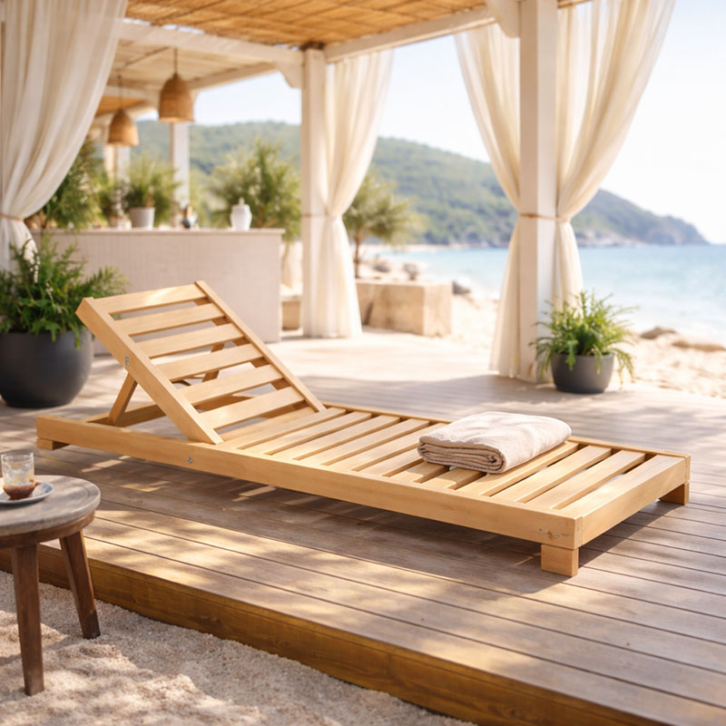Ξαπλώστρα Specta pakoworld μασίφ ξύλο οξιάς σε φυσικό χρώμα 60x190x50εκ